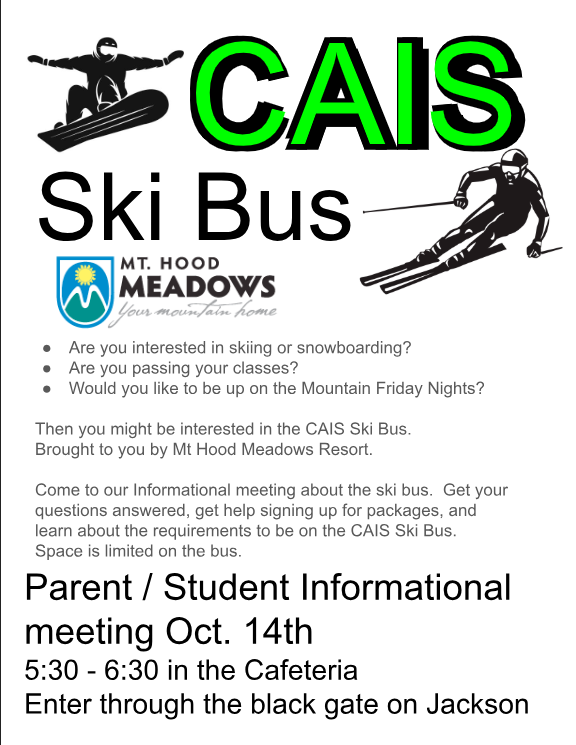 October 14th - Ski Bus Parent Info Meeting at 5:30